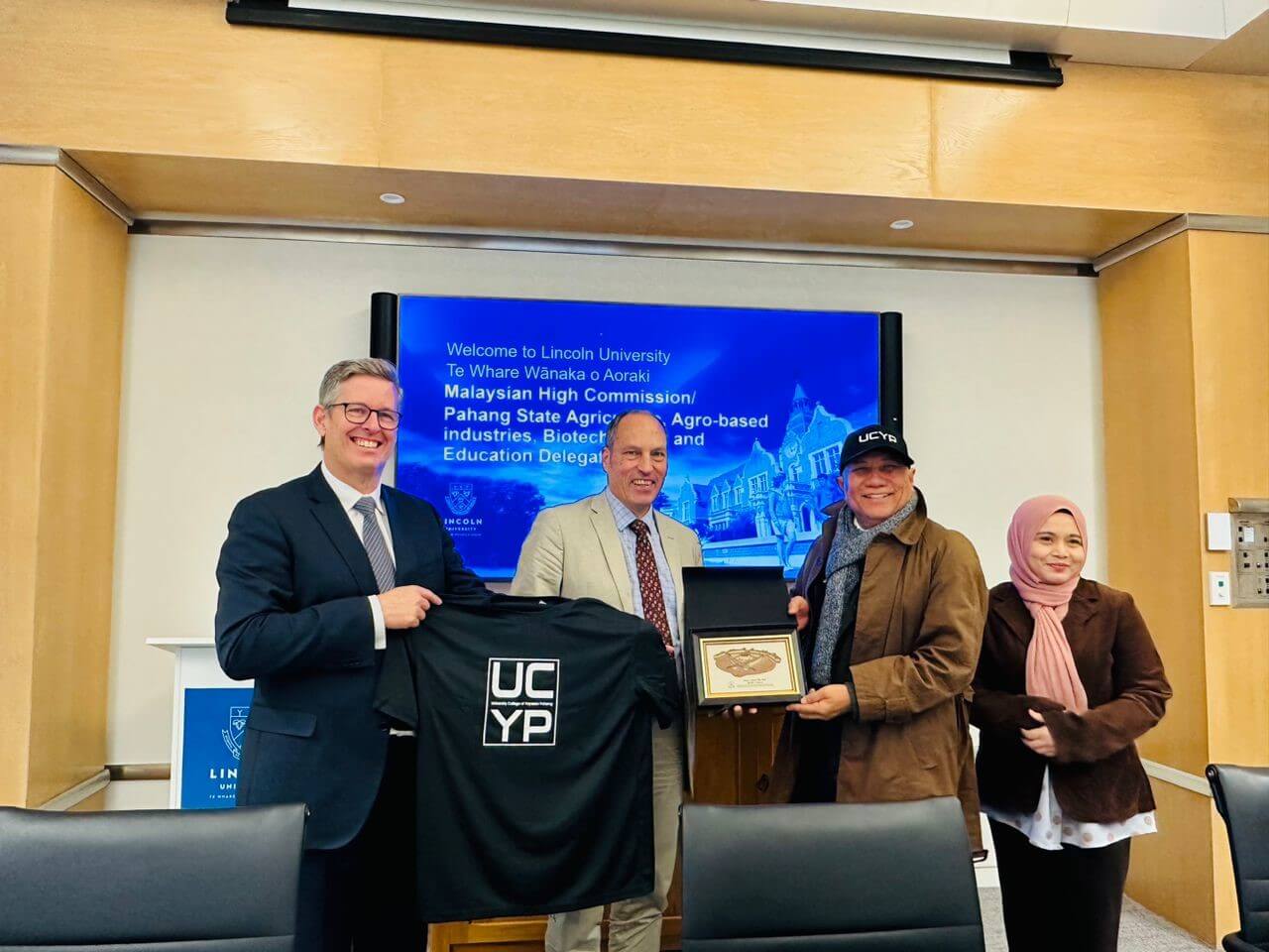 Seterusnya, pada 22 Jun 2023, delegasi Kerajaan Negeri Pahang bersama-sama dengan UCYP telah mengadakan lawatan kerja ke Lincoln University yang terletak di Christchurch, New Zealand. Delegasi disambut oleh Ms Annie, Pegawai Perhubungan Antarabangsa Lincoln University dan beberapa orang pengurusan tertinggi universiti seperti Timbalan Naib Canselor Pembangunan Pelajar, Dekan Faculty of Agriculture and Life Sciences, Penyelidik Pasca Kedoktoran dan dua orang warga pelajar Malaysia yang mengikuti program ijazah kedoktoran di Lincoln University. Delegasi diberi taklimat berkenaan latar belakang Lincoln University dan program-program akademik yang ditawarkan, projek penyelidikan yang sedang dijalankan dan fasiliti pengajaran dan pembelajaran yang disediakan di Lincoln University. Lincoln mempunyai kepakaran dalam bidang agrikultur, pertanian, penternakan dan industri tenusu. Delegasi turut dibawa ke Makmal Inovasi Makanan untuk melihat prasarana penyelidikan ke arah menghasilkan inovasi makanan daripada bahan berasaskan tumbuhan bagi tujuan keterjaminan makanan.