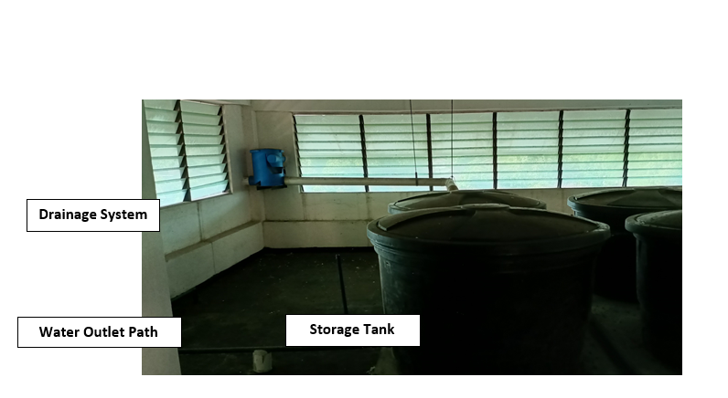 A rainwater harvesting initiative has been implemented at the student dormitory areas as a proactive step to optimise water resource usage. This system involves the installation of rainwater storage tanks that collect rainwater through a drainage system from building rooftops.
